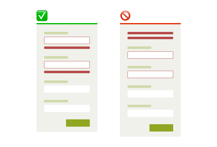 - No deshabilites el botón de enviar el formulario. Ante la confusión, es mejor enviar un formulario y esperar a recibir los errores que no poder enviar nada y no saber por qué aún no puede enviarse el formulario.
